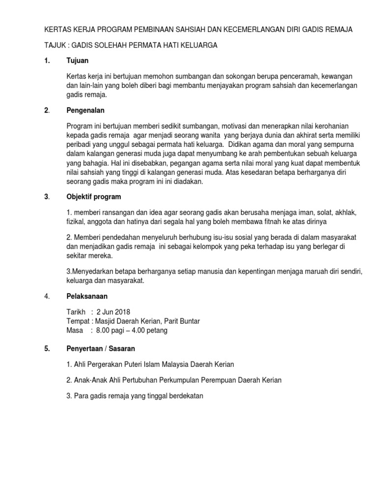 Kertas Kerja Program Pembinaan Sahsiah Dan Kecemerlangan Diri Gadis Remaja Pdf