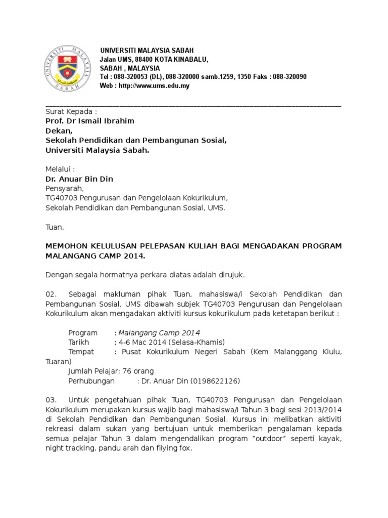 Surat Permohonan Pengecualian Kuliah Pdf