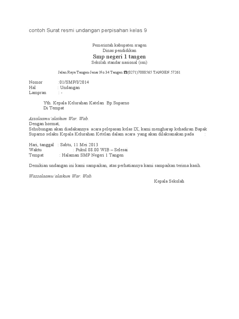 Contoh Surat Undangan Orang Tua Perpisahan Siswa Kelas Ix Smp 2017